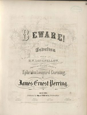 Words by H.W. Longfellow. Dedicated to Ephraim Leonard Corning. Bates catalog record.
