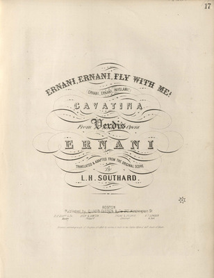 Cavatina from Verdi's opera Ernani. Arranged by L.H. Southard. Bates catalog record.