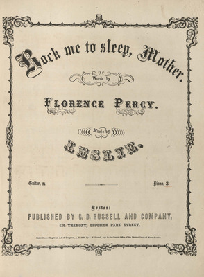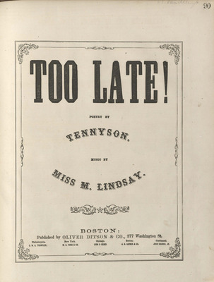 Poetry by Tennyson. Music by Miss M. Lindsay. Circa 1858 to 1876. Bates catalog record.